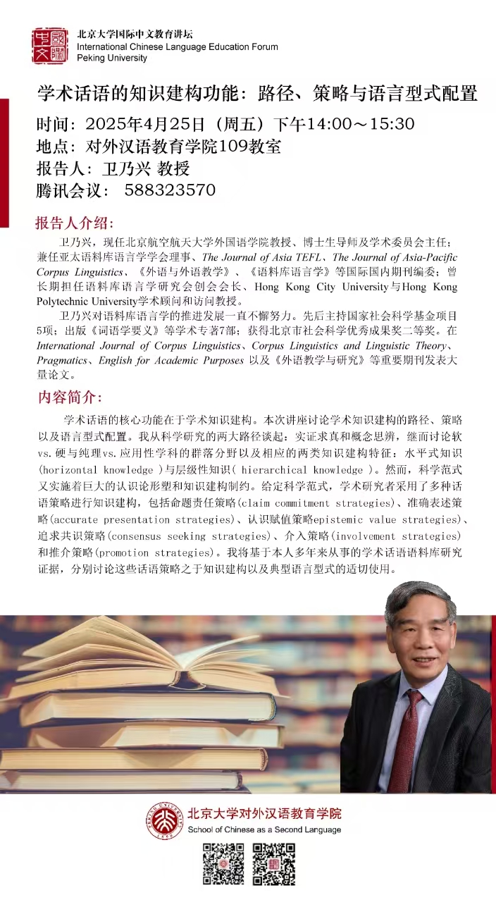 【beat365亚洲体育在线国际中文教育讲坛预告】学术话语的知识建构功能:路径、策略与语言型式配置